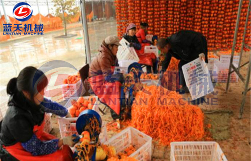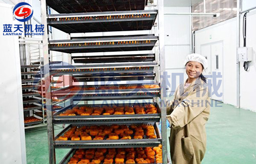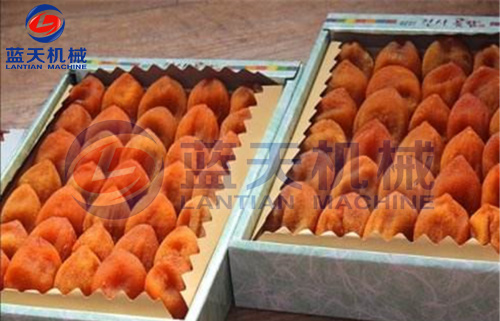 柿餅加工工藝流程:選果→去皮→裝盤→第一次烘烤→???rarr;第二次烘烤→???rarr;第三次烘烤→停烤→真空包裝→入庫。