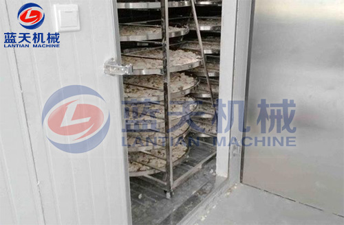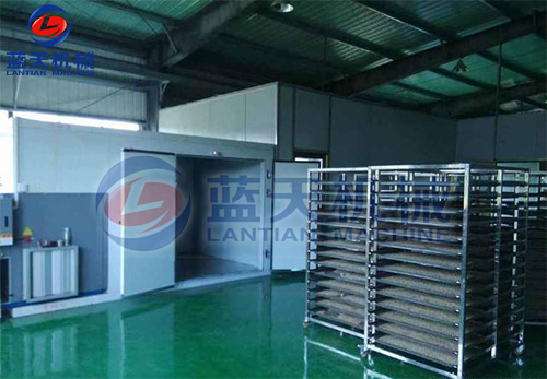 2、中濕中溫階段:溫度上升,但應低于60℃,范圍為50-60℃,此段適當換新風除濕,根據(jù)濕氣多少合理調(diào)整。隨著溫度繼續(xù)升高,淮山片處于中溫中濕的狀態(tài),這時持續(xù)的溫度和循環(huán)風將熱量均勻的送到烘房間的各個角落,山藥片持續(xù)蒸發(fā)出水汽并被排濕系統(tǒng)帶走。