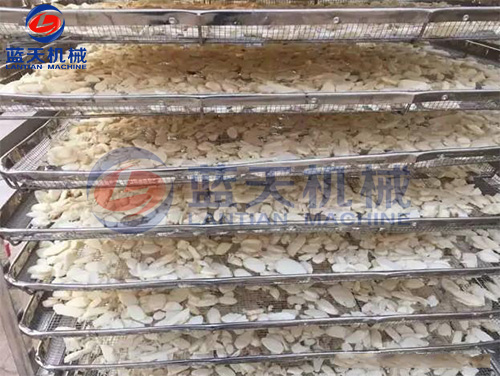 1、高濕低溫階段:溫度小于50℃,范圍為40-50攝氏度,避免高溫高濕造成山藥顏色的變化。觀察山藥表面水汽變化,淮山片的表面開始形成水汽,冷凝變成水排出烘干房外,隨時除濕,這段時間應在3-3.5小時。
