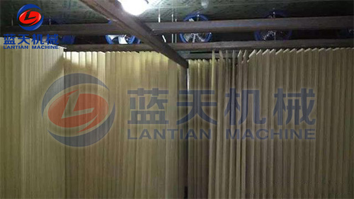 有些掛面容易在烘干過程中容易斷,有些不容易斷(玉米淀粉有幫助?。?,有些不能耐受溫度,溫度一高就容易斷,如果用太陽曬的話,盛夏上午10點鐘的太陽就能把掛面曬斷。有些溫度可以高一些。有些掛面一定要大量的風(fēng)量,否則中間的掛面就酸掉了!面條烘干機系統(tǒng)設(shè)計中非常重要的環(huán)節(jié)就是風(fēng)路設(shè)計,對于大部分掛面的烘干來說,使用頂出風(fēng)機組再結(jié)合上下風(fēng)路更利于風(fēng)路循環(huán),更利于面條的烘干。