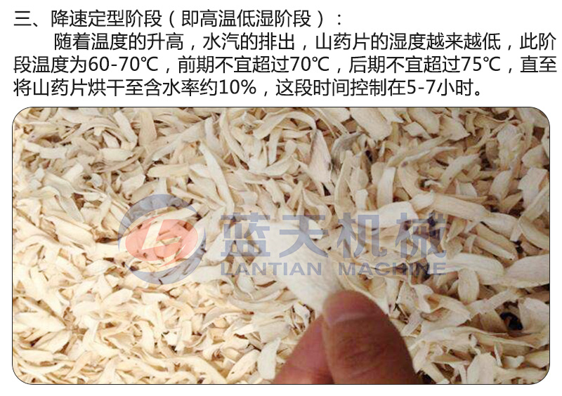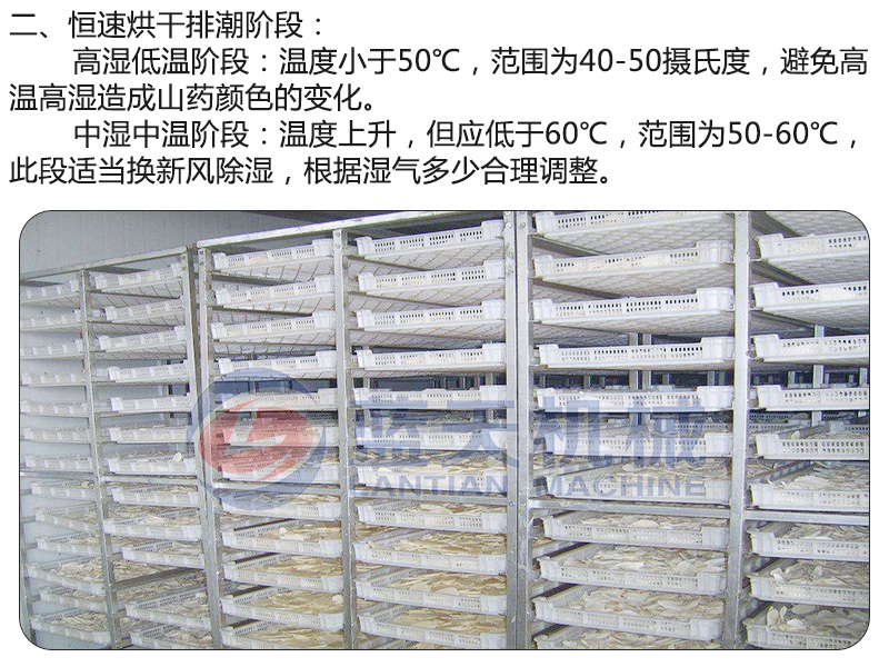 山藥的含水量大不宜長期儲存,所以為了山藥的長期保存,一般把山藥切片后用山藥烘干機(jī)進(jìn)行烘干處理。山藥切片的厚薄、烘干溫度、烘干時(shí)間的把控對于山藥片的烘干效果很重要。小編給大家介紹下使用山藥烘干設(shè)備烘干上藥片的烘干過程。
