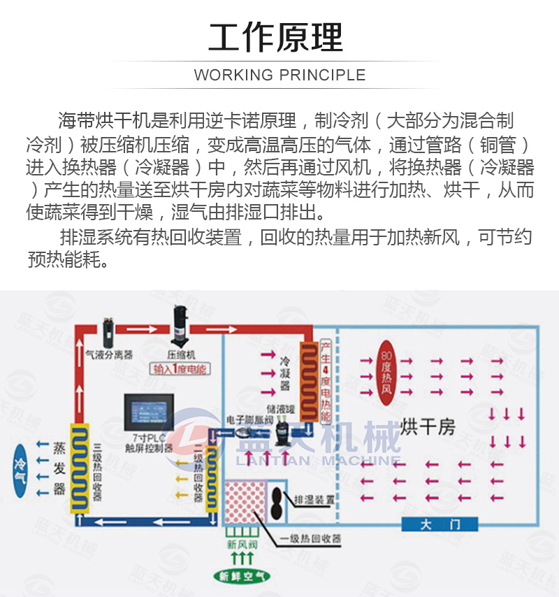 4、色澤—保持海帶烘干后的色澤至關(guān)重要;海帶烘干設(shè)備可以讓海帶烘干干燥后的色澤迎合滿足到市場(chǎng)要求。