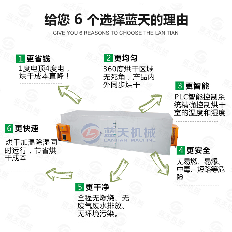 要達(dá)到以上的要求,那么烘干設(shè)備是很嚴(yán)格的。傳統(tǒng)的太陽(yáng)晾曬等方法都是不合格的,海帶烘干機(jī)需要消耗少量的電就能從空氣能吸取大量的熱能使烘干房迅速升溫,同比傳統(tǒng)的烘干設(shè)備節(jié)能百分之六十以上。海帶烘干設(shè)備在常壓常溫下運(yùn)行,烘干過(guò)程幾乎沒(méi)有污染物排放,不會(huì)對(duì)產(chǎn)品和環(huán)境造成污染。海帶烘干房是真正可靠的新型烘干設(shè)備。海帶烘干機(jī)烘干成本低,效率也高,提高了商家的利益,我們都知道海帶的價(jià)格是很便宜的,所以如果想要從中獲得利益,那么成本不能高,成本一高,也就掙不到什么。所以海帶烘干機(jī)是適合用來(lái)烘干海帶的。