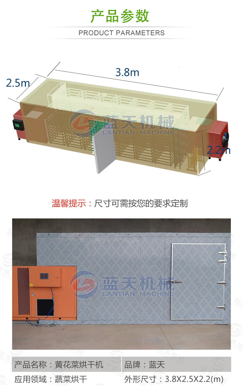 尾末的一段時間的烘干過程,要注意觀察黃花菜排水及干燥的程度,可根據(jù)干燥情況,繼續(xù)升高溫度,再烘干4小時左右,然后結(jié)束整個烘干流程。