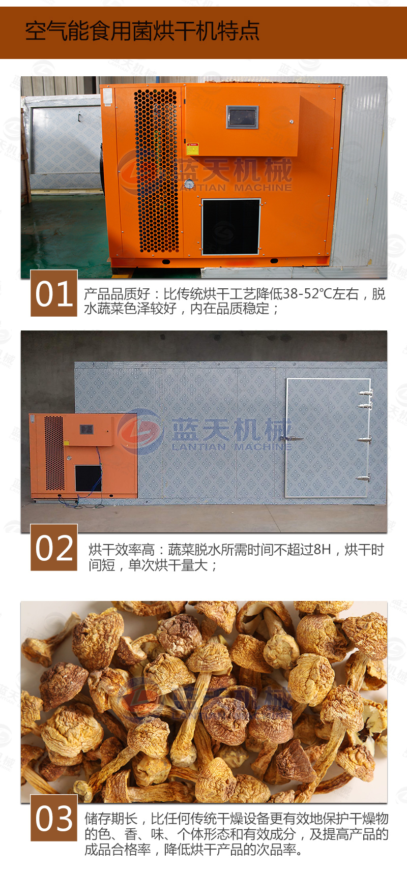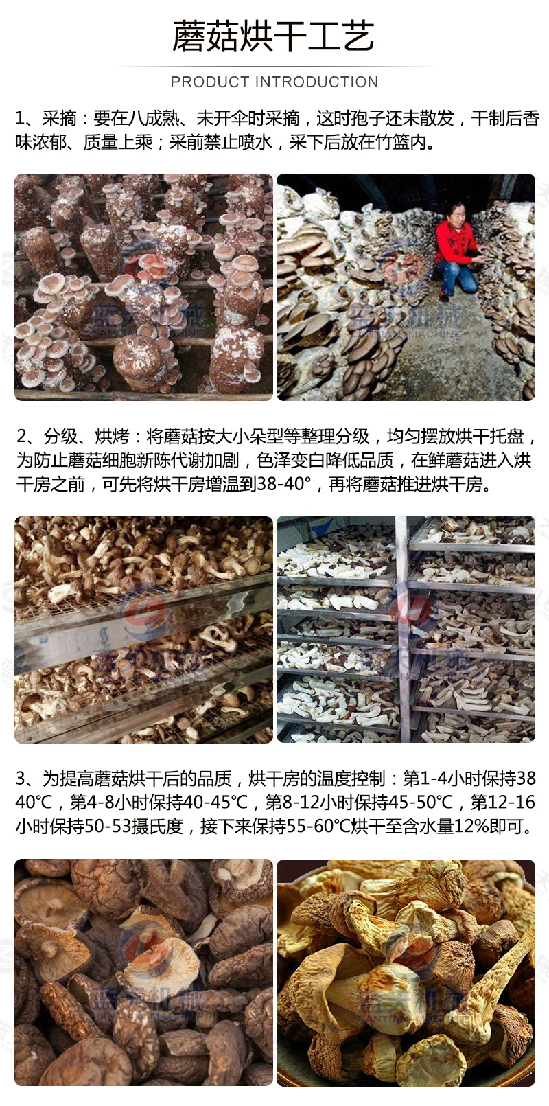 2、溫度不能超過(guò)65℃,否則易燒焦。(食用菌烘干房溫度不宜過(guò)高)