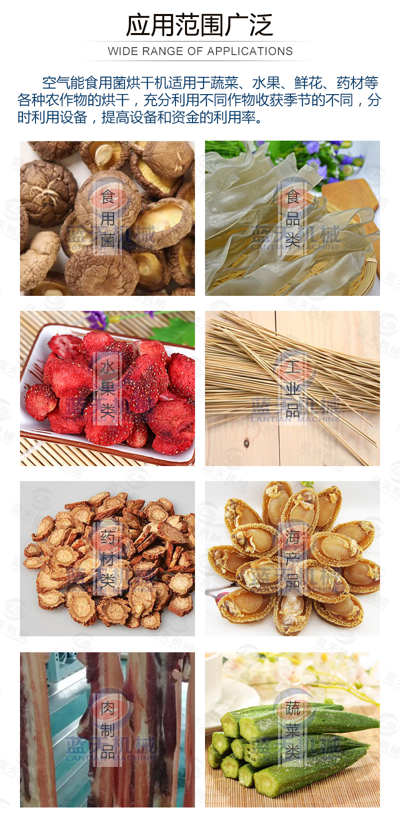 食用菌是指子實(shí)體碩大、可供食用的蕈菌(大型真菌),通稱為蘑菇。中國(guó)已知的食用菌有350多種,其中多屬擔(dān)子菌亞門,常見的有:香菇、草菇、蘑菇、木耳、銀耳、猴頭、竹蓀、松口蘑(松茸)、口蘑、紅菇和牛肝菌等;少數(shù)屬于子囊菌亞門,其中有:羊肚菌、馬鞍菌、塊菌等。上述真菌分別生長(zhǎng)在不同的地區(qū)、不同的生態(tài)環(huán)境中。批量生產(chǎn)食用菌干品需要用到食用菌烘干機(jī)。