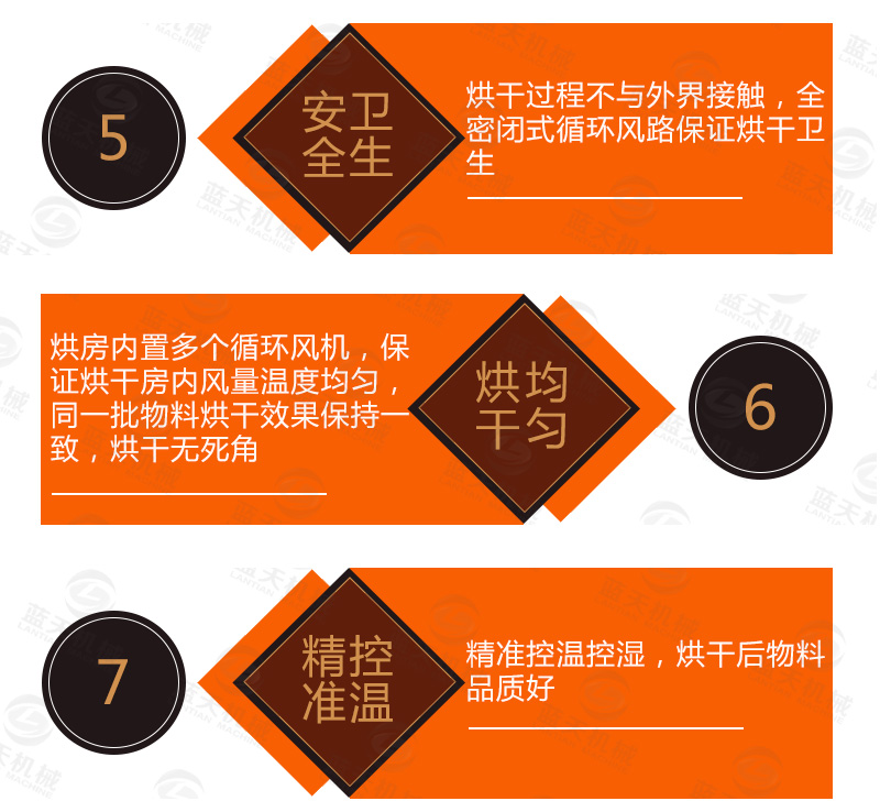 高濕低溫段,溫度小于50度,范圍40度~50度,避免高溫高濕造成枸杞顏色的變化,觀察枸杞表面水汽變化,隨時(shí)排潮,這段時(shí)間應(yīng)在3~3.5小時(shí)。