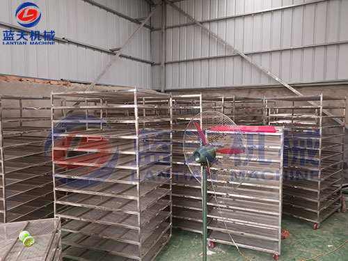 商丘市種植辣椒的韓總向我們公司訂購了一臺箱式辣椒烘干機,箱式的辣椒烘干房配置的是物料托盤,將新鮮辣椒鋪在物料托盤上,推入辣椒干燥房,設置好相應的辣椒烘干參數(shù),進行烘干。